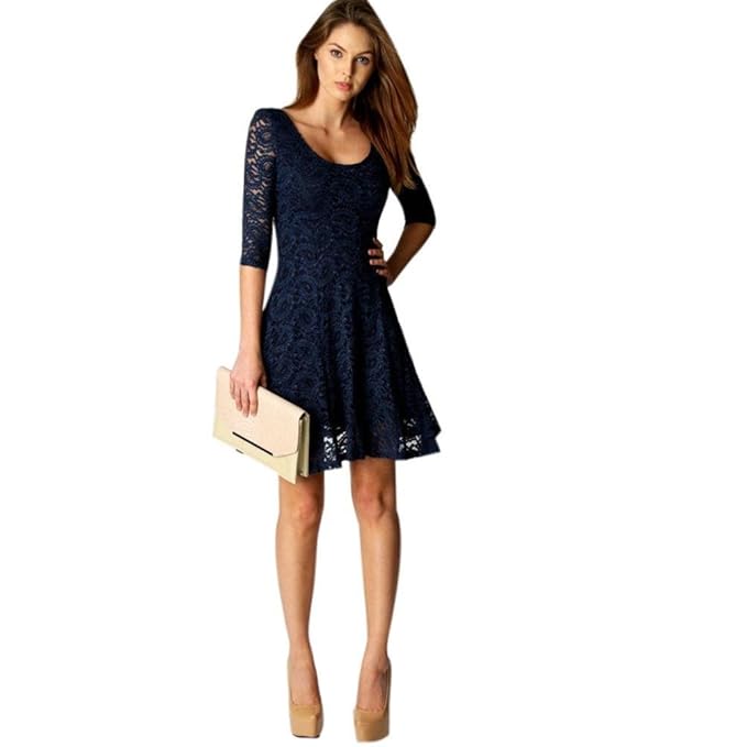 Shobdw Separacion Moda Mujer Encaje Media Manga Fiesta Noche Corto Mini Vestido