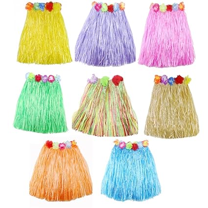 Jzk 8 Piezas Falda Luau Hawaiana Para Ninas Mujer Fiesta Hawaiana Luau Accesorio Fiesta Hawaii