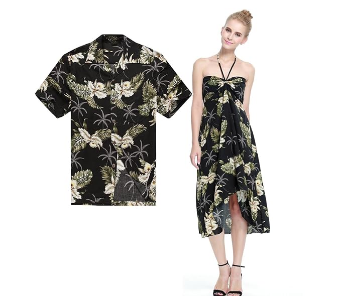Pareja Juego De Fiesta Hawaiana Luau Traje Conjunto Camisa