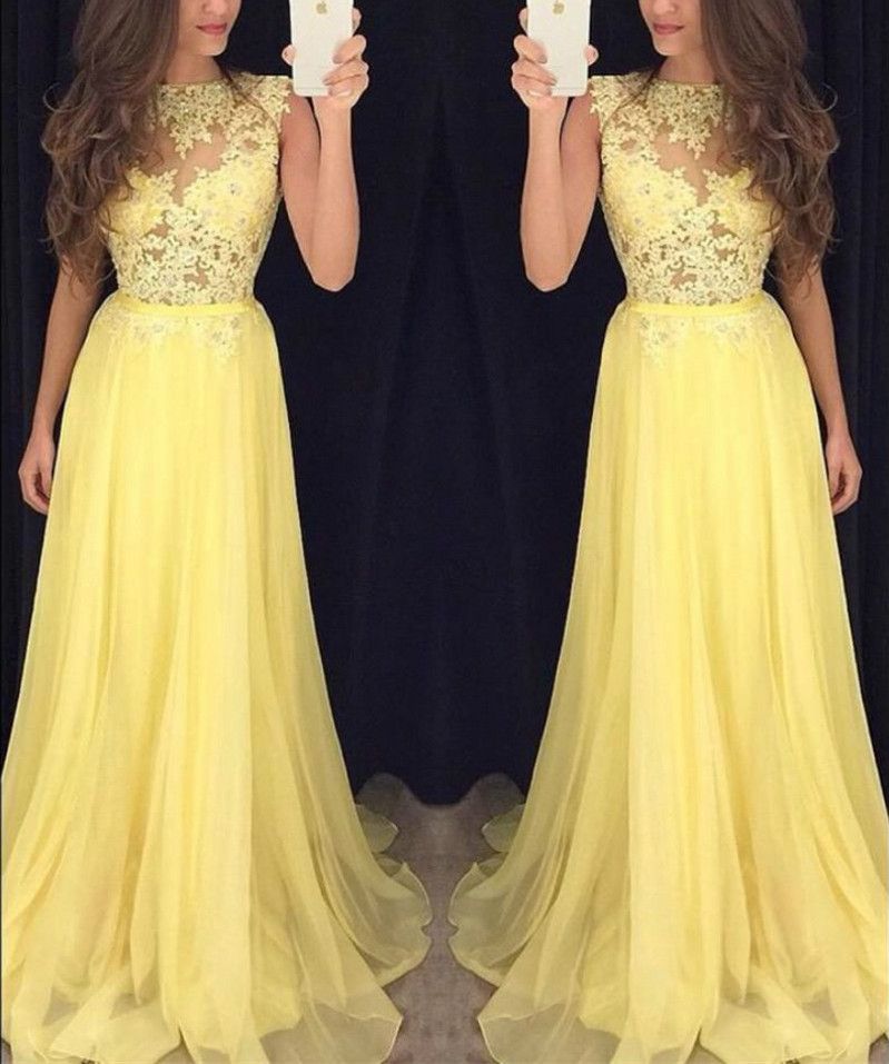 Compre Vestido Amarillo Claro Vestido De Fiesta Sin Mangas Con Apliques De Encaje Hasta El Suelo Vestidos De Fiesta Para Dama Nina Dulce 16 A 179 9